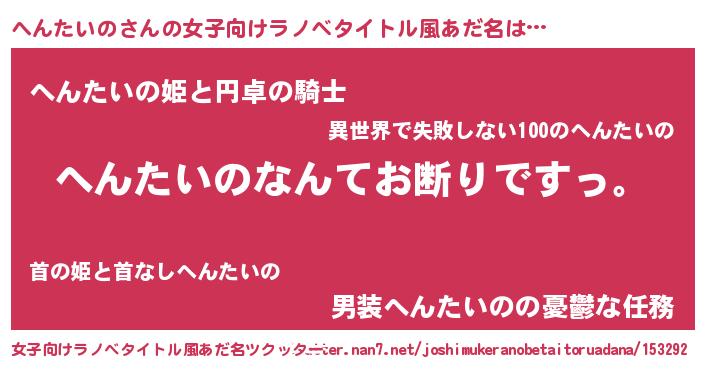 | 男性向けラノベタイトル風あだ名 | 『魔法科高校のへんたいの』 |