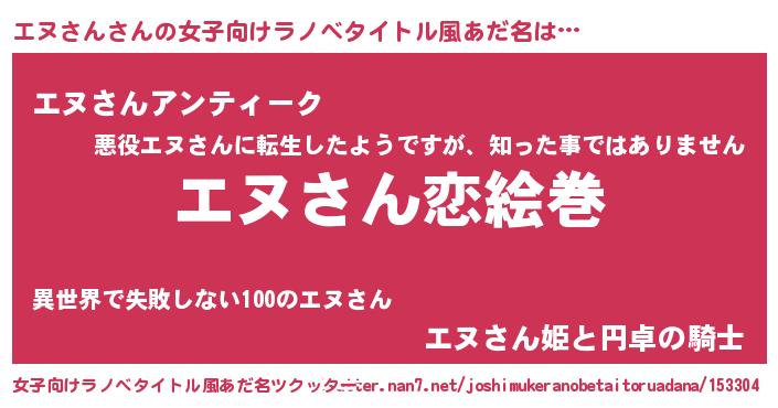 | 男性向けラノベタイトル風あだ名 | 『ノーゲーム・ノーエヌサン』 |