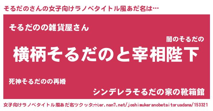 | 男性向けラノベタイトル風あだ名 | 『そるだのに滅ぼされるだけの簡単なお仕事です』 |