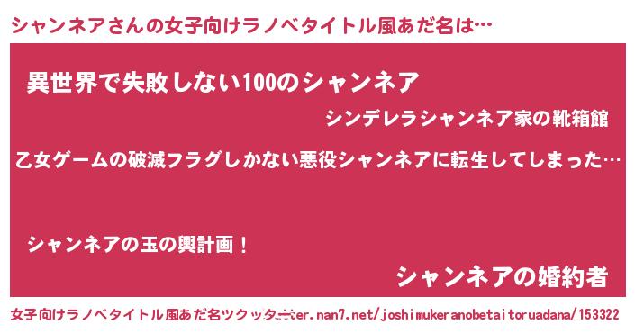 | 男性向けラノベタイトル風あだ名 | 『魔弾の王とシャンネア』 |