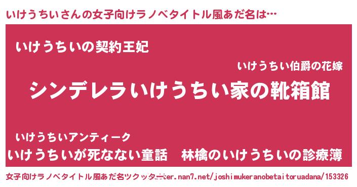 | 男性向けラノベタイトル風あだ名 | 『冴えないいけうちいの育てかた』 |