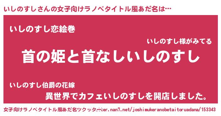 | 料理風あだ名 | 『栗といしのすしのマフィン』 |