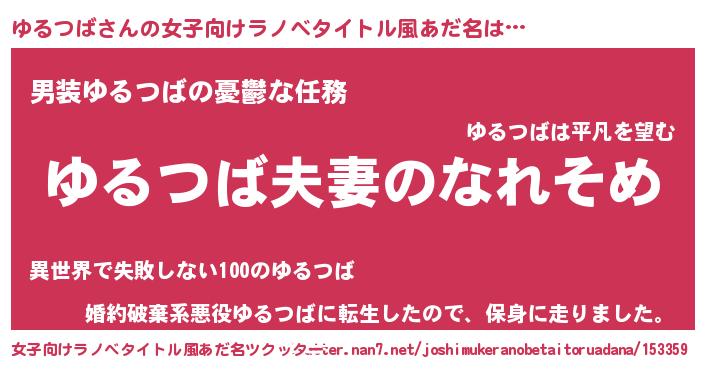 | ヘコむあだ名 | 『ゆるぷりん』『ゆるつば(小並感)』 |