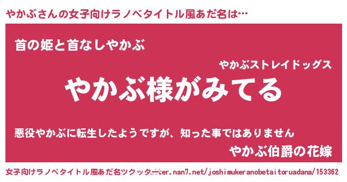 | 意味不明あだ名 | 『とにかく怪しいやかぶ』『自称やかぶ』 |