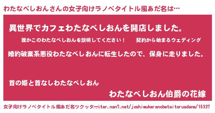 | 男性向けラノベタイトル風あだ名 | 『転生したらわたなべしおんだった件』 |