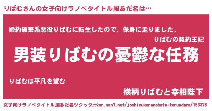 | 男性向けラノベタイトル風あだ名 | 『冴えないりばむの育てかた』 |