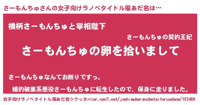 | 胡散臭い通販商品みたいなあだ名 | 『伝統あるサプリメント…その名も「さーもんちゅ」』 |
