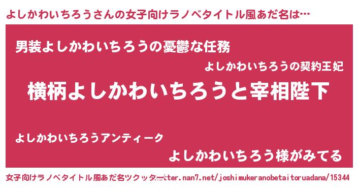 | 意味不明あだ名 | 『とにかく怪しいよしかわいちろう』 |