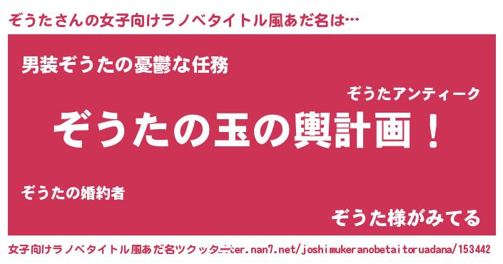 | 意味不明あだ名 | 『ヨモギ科ぞうた属』『自称ぞうた』 |