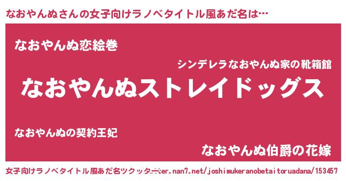 | 男性向けラノベタイトル風あだ名 | 『Re:なおやんぬから始める異世界生活』 |