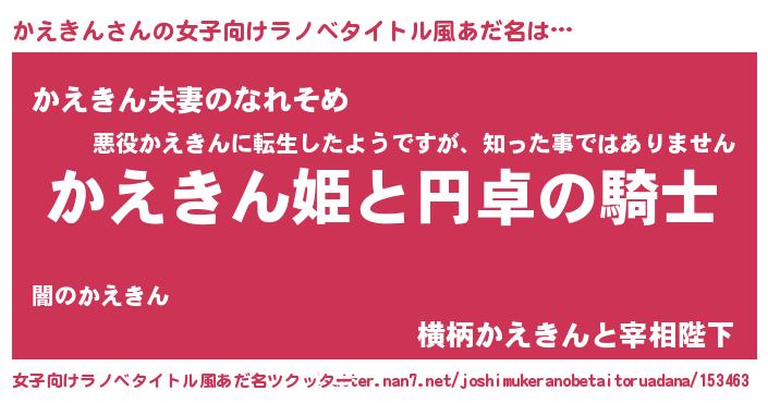 | 意味不明あだ名 | 『ペロリンかえきん』『自称かえきん』 |
