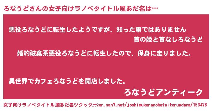 | 男性向けラノベタイトル風あだ名 | 『転生したらろなうどだった件』 |