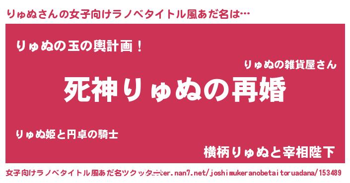 | 男性向けラノベタイトル風あだ名 | 『ノーゲーム・ノーリュヌ』 |