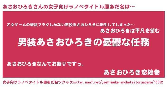 | 胡散臭い通販商品みたいなあだ名 | 『あなたにだけ特別に提供する限定10本のレアな日本酒…その名も「あさおひろき」』 |