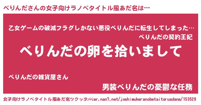 | 男性向けラノベタイトル風あだ名 | 『べりんだの嫁は女の子じゃないと思った?』 |