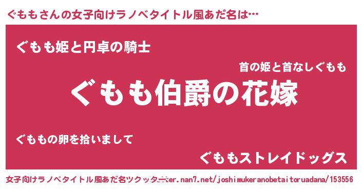 | 男性向けラノベタイトル風あだ名 | 『やはりぐももの青春ラブコメはまちがっている 』 |
