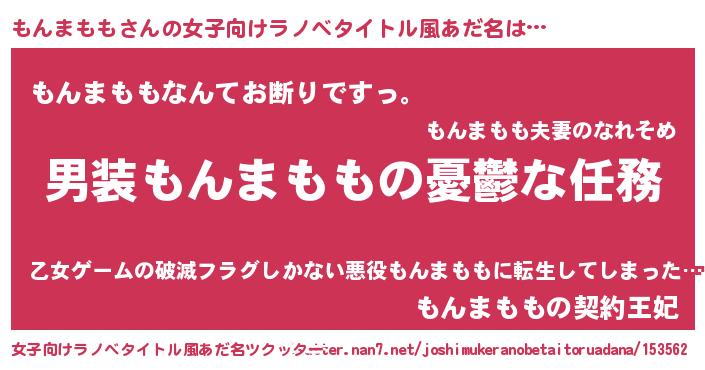 | 男性向けラノベタイトル風あだ名 | 『うちのもんまももが世界を掌握している!』 |