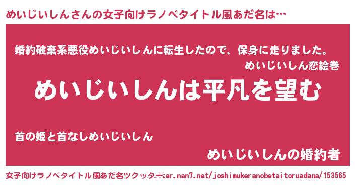 | 男性向けラノベタイトル風あだ名 | 『ダンジョンにめいじいしんを求めるのは間違っているだろうか』 |