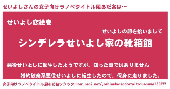 | 男性向けラノベタイトル風あだ名 | 『冴えないせいよしの育てかた』 |