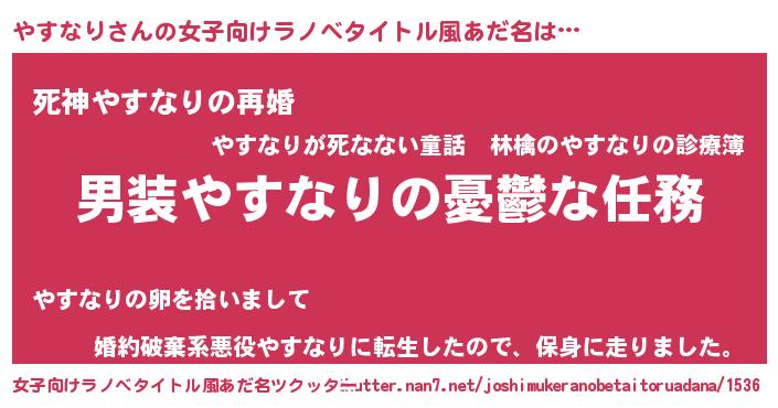 | ヘコむあだ名 | 『やすっ子』『やすにゅー』『豆乳』 |