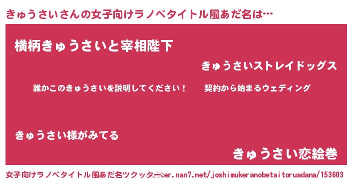 | 意味不明あだ名 | 『ペロリンきゅうさい』『自称きゅうさい』 |