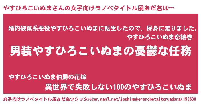 | 男性向けラノベタイトル風あだ名 | 『うちのやすひろこいぬまが世界を掌握している!』 |