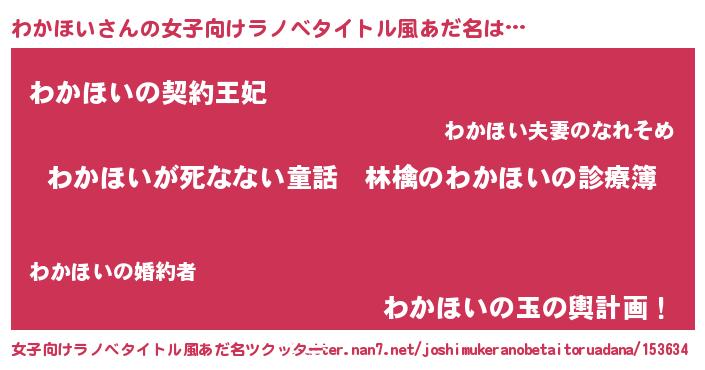 | 男性向けラノベタイトル風あだ名 | 『魔弾の王とわかほい』 |