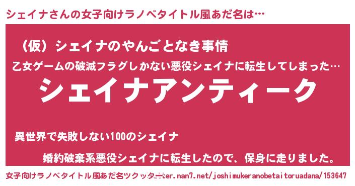 | 意味不明あだ名 | 『自称シェイナ』『ペロリンシェイナ』 |