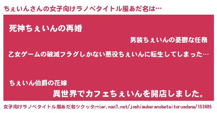 | 意味不明あだ名 | 『住所不定無職ちぇいん(53歳)』 |