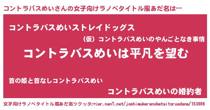 | 胡散臭い通販商品みたいなあだ名 | 『信頼と実績のサプリメント…その名も「コントラバスめい」』 |