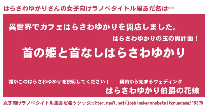 | 意味不明あだ名 | 『永久保存はらさわゆかり』 |