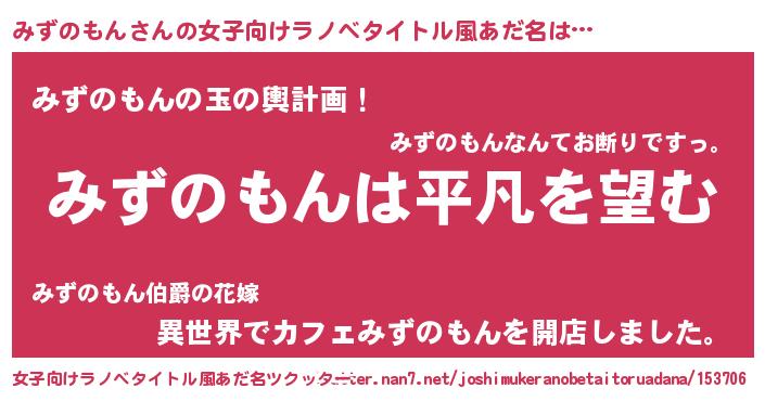 | ヘコむあだ名 | 『みずを』『みずのもん(笑)』 |