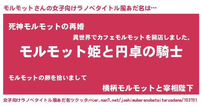 | 胡散臭い通販商品みたいなあだ名 | 『モテモテ間違いなしブレスレット…その名も「モルモット」』 |