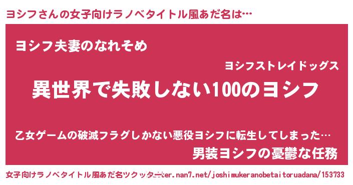 | 意味不明あだ名 | 『永久保存ヨシフ』『自称ヨシフ』 |
