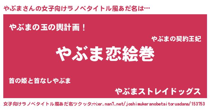 | ヒーロー風カッコイイあだ名 | 『愛の使者やぶま』『究極戦士ヤブマ』 |