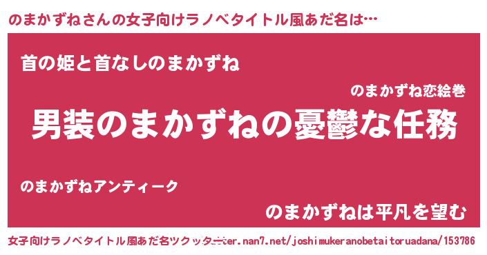 | 男性向けラノベタイトル風あだ名 | 『うちののまかずねが世界を掌握している!』 |