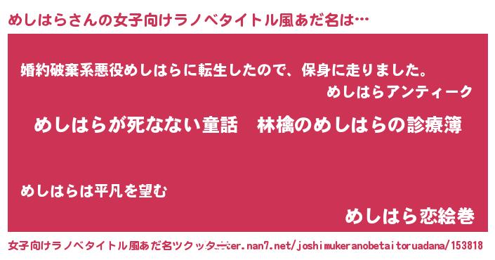 | 男性向けラノベタイトル風あだ名 | 『魔弾の王とめしはら』 |