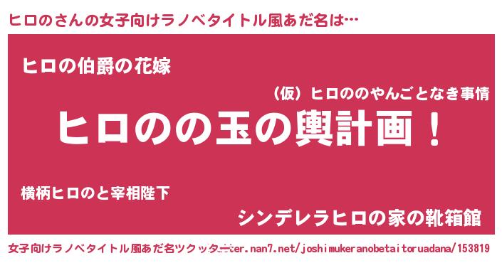 | ヒーロー風カッコイイあだ名 | 『ウルトラヒロのマン』『スーパーヒロノ』 |