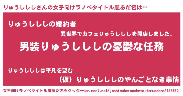 | 男性向けラノベタイトル風あだ名 | 『うちのりゅうしししが世界を掌握している!』 |