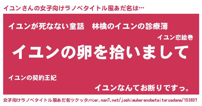 | 男性向けラノベタイトル風あだ名 | 『イユンの嫁は女の子じゃないと思った?』 |