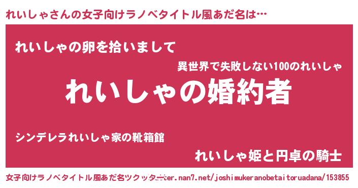 | 男性向けラノベタイトル風あだ名 | 『うちの娘の為ならば、俺はもしかしたられいしゃも倒せるかもしれない。』 |