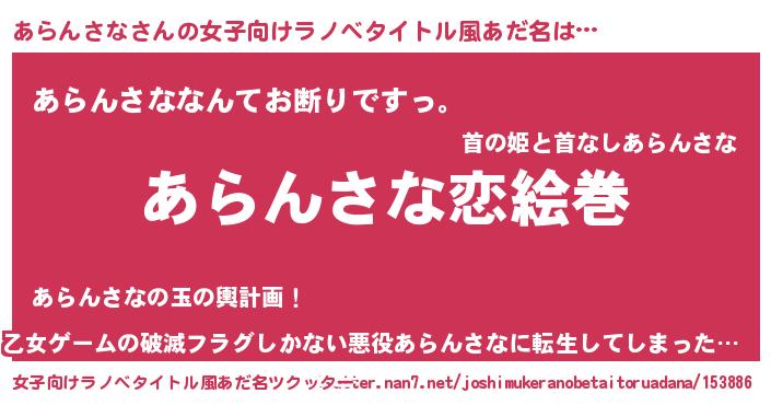 | 男性向けラノベタイトル風あだ名 | 『ノーゲーム・ノーアランサナ』 |