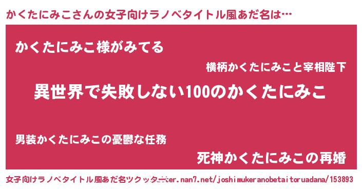 | 男性向けラノベタイトル風あだ名 | 『かくたにみこという概念が存在しない退屈な世界 』 |