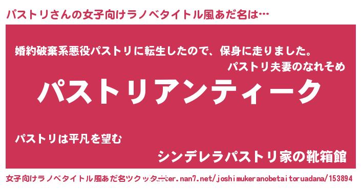 | 意味不明あだ名 | 『自称パストリ』『たけのこ科パストリ属』 |
