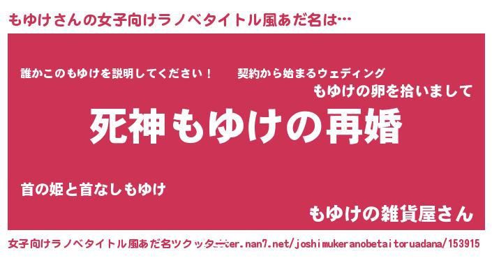 | 男性向けラノベタイトル風あだ名 | 『ノーゲーム・ノーモユケ』 |