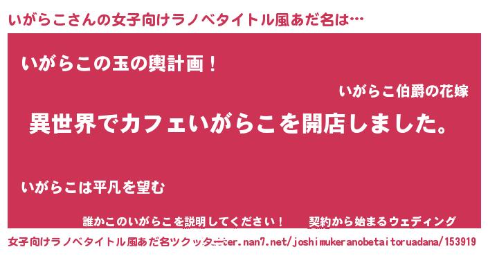 | 意味不明あだ名 | 『永久保存いがらこ』『ペロリンいがらこ』 |
