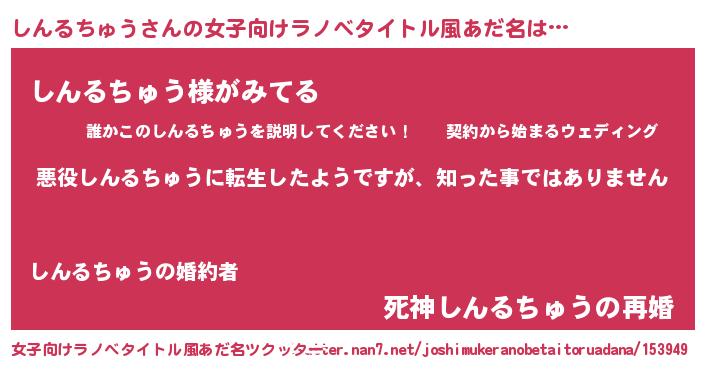 | 意味不明あだ名 | 『住所不定無職しんるちゅう(3歳)』 |