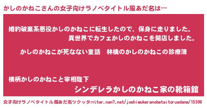| 男性向けラノベタイトル風あだ名 | 『魔弾の王とかしのかねこ』 |