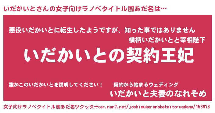 | 胡散臭い通販商品みたいなあだ名 | 『来世でも幸せになれる健康食品…その名も「いだかいと」』 |