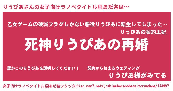 | 男性向けラノベタイトル風あだ名 | 『ノーゲーム・ノーリウピア』 |